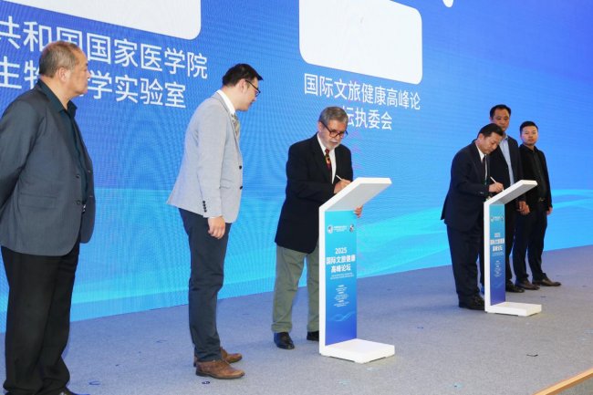 国际文旅健康高峰论坛组委会主任崔勇与智利国国家医学院膜生物化学实验室主任内斯特·安东尼奥·拉戈斯·威尔逊教授,分别代表双方机构,庄重签署全面战略合作框架协议。参与签约仪式的嘉宾还有振华国盛能源(山东)有限公司董事长孟连昭先生,振华国盛能源(山东)有限公司董事梅亮先生,上海方尖石信息科技有限公司总经理周峥先。此举标志着中国在文旅健康领域的国际化合作,从产业层面纵深至尖端科研领域,开启了以科技创新驱动全球健康福祉的新篇章。
