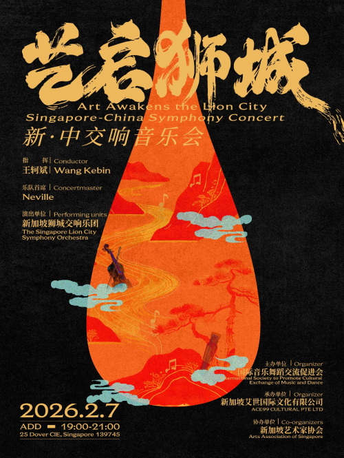 由国际音乐舞蹈交流促进会联合主办,新加坡艺术家协会协办,新加坡艾世国际文化有限公司承办的“艺启狮城——新·中交响音乐会”,于2026年2月7日在新加坡 ACJC Music Centre 成功举办。音乐会以交响乐为核心载体,融合中国传统音乐、当代创作与西方古典及现代作品,多元曲风同台呈现,展现了一场跨越地域与时代的中西音乐艺术对话。