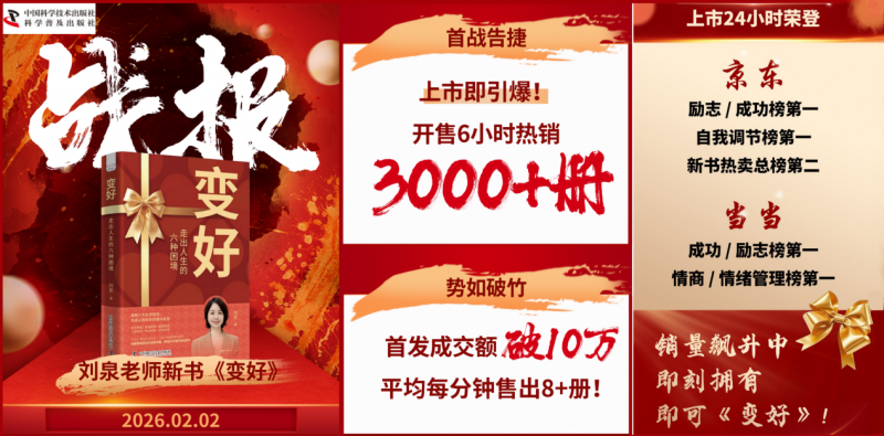 《变好 —— 走出人生的六种困境》这本书凝结了刘泉 20 年的人生感悟与十余年的行业经验,收录了大量真实的咨询案例,系统拆解了养育困境、家庭困境、感情困境、人际困境、事业困境、财务困境这六大相互关联的人生困局。它以 “案例 + 分析 + 实操方法” 的形式,揭示困境的多米诺效应,帮助读者从根源突破困局,实现自我成长。其热销战绩不仅印证了市场对专业心理知识的迫切需求,更彰显了刘泉在心理与家庭教育领域的深厚积淀与广泛影响力。