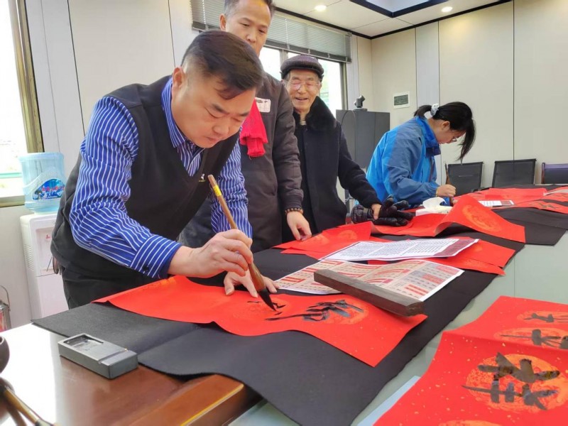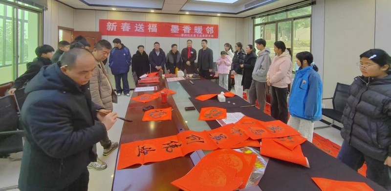 本次活动设置民俗体验区与安全宣讲区两大核心区域,让孩子们在体验传统年俗的同时,收获满满的安全知识。民俗体验区内,两大活动同步开展,热闹非凡。手工灯笼制作区里,手工老师现场授课,细致讲解榫卯结构搭建技巧,手把手协助小朋友搭建灯笼框架、粘贴花草纸、安装灯串与提杆,家长们全程陪同参与,亲子协作间,一个个造型别致的花草纸灯笼逐渐成型,孩子们捧着自己的作品喜笑颜开,这份亲手制作的新年装饰,也成为了小年最特别的纪念。书法家写春联赠居民区域,5名书法家协会成员挥毫泼墨,现场为居民书写春联与福字,大红的宣纸铺展,浓墨的笔触游走,传统吉祥语与铜官文化特色内容跃然纸上,居民们有序挑选心仪的春联内容,接过墨香四溢的春联与福字,脸上洋溢着幸福的笑容,志愿者则在一旁贴心协助整理、晾干春联,让美好祝福顺利传递。