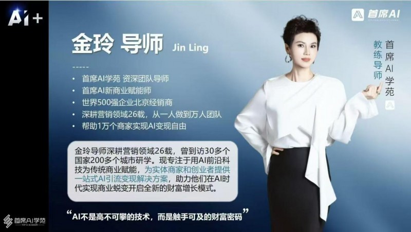 26载营销路,从美丽健康行业的深耕者到AI数字化营销的领路人,金玲老师始终以专业为基、以创新为翼。未来,她将继续以AI技术为核心抓手,聚焦AI+美丽健康+教育三大方向,持续完善一站式AI引流变现解决方案,推动美丽健康行业的数字化升级,助力百业千行实体商家打造可持续的增长路径。同时,她也将继续深耕女性成长与美育领域,以自身的经验与资源,赋能更多创业者与女性群体,在AI时代的浪潮中,与行业同行,携手共进,绘百业营销的新蓝图。
