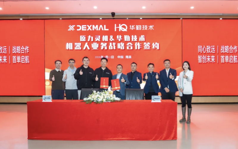 2026年2月11日,原力灵机与华勤技术成功举办机器人业务战略合作签约仪式暨数据采集机器人首单出货交付庆典。双方将围绕“机器人全栈软硬件研发、具身智能技术量产化、工业生产场景落地”展开深度合作,以“具身原生+规模制造+场景闭环”模式,加速通用机器人从技术验证走向规模化商用。
