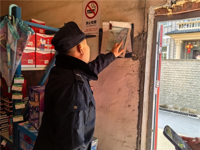春节临近,烟花爆竹进入购销旺季,安全风险随之攀升。为切实筑牢节日安全防线,径山镇双溪村专职网格员小郑严格对照余杭区基层治理“十能”工作要求,以日常走访为抓手,扎实开展烟花售卖点专项安全检查,把隐患排查、政策宣传、服务群众落到实处,以“小网格”守护辖区“大平安”。