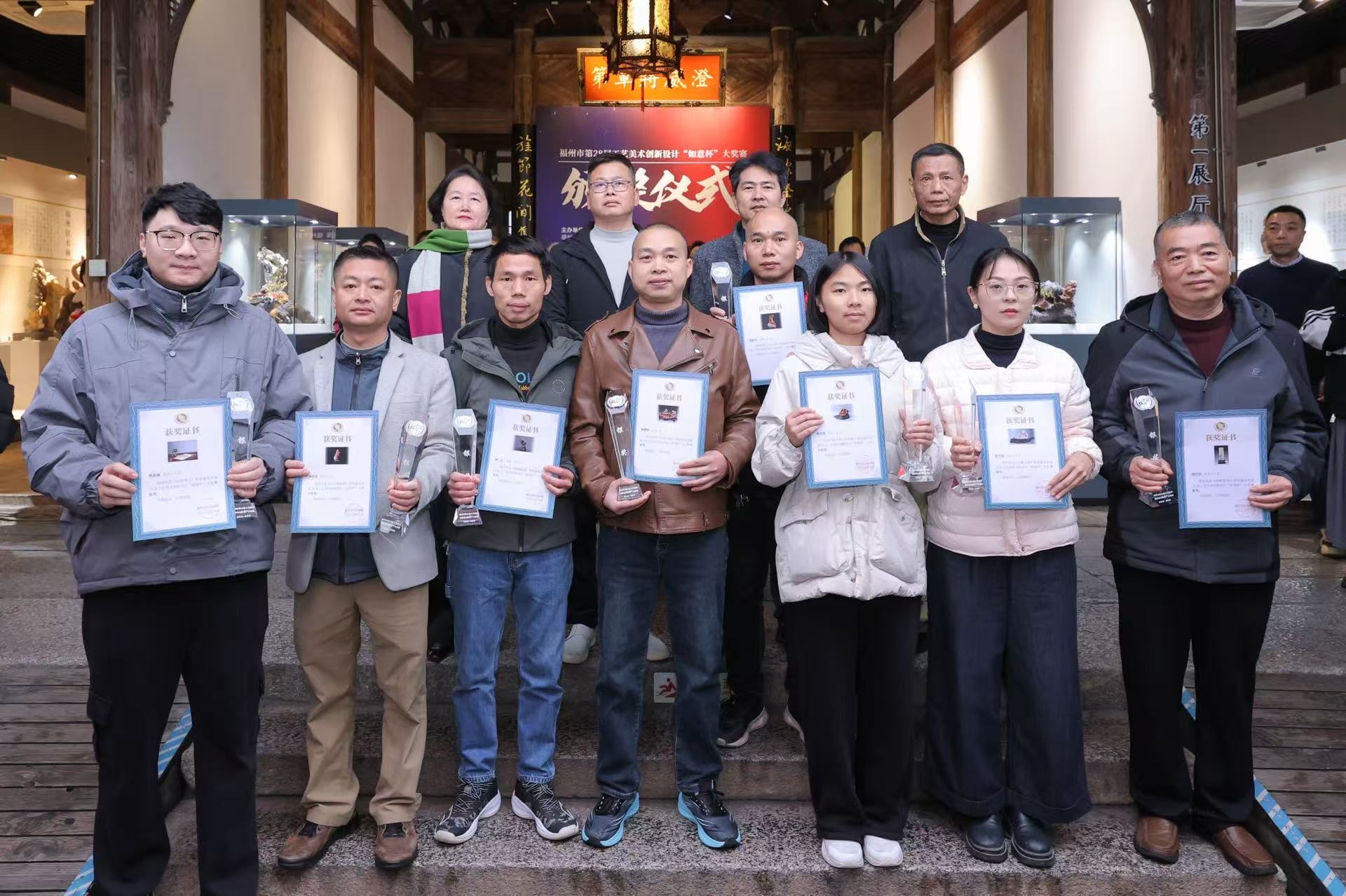 2026年2月11日,由福州市工业和信息化局、福州市晋安区人民政府主办,福州市寿山石行业协会、福州市脱胎漆器行业协会、福州市木雕行业协会、福州市木雕行业协会软木画分会承办的福州市第28届工艺美术创新设计“如意杯”大奖赛颁奖仪式在福建省海峡民间艺术馆举行。