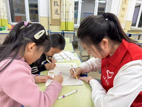 1月13日,在大兴安岭呼玛县第一小学,队员们开展作业辅导、创意绘画、守信故事分享等活动,,带领孩子们理解承诺的分量。一幅幅充满想象力的画作,一张张亲手写下的承诺卡片,不仅记录了快乐的陪伴时光,更在孩子们心田播下了诚实、友善与温暖的种子。