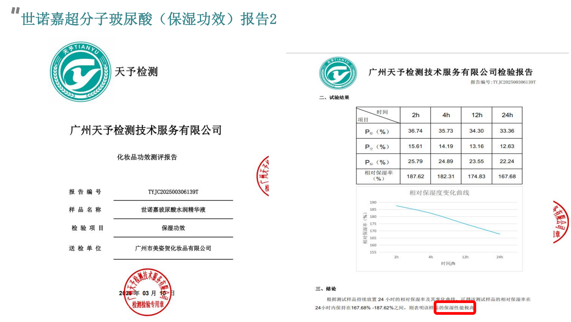 世诺嘉超分子技术即打破了“500道尔顿”壁垒,可实现深层灌溉,10万分子量无创透皮,24小时内保湿率维持在167.68%-187.62%之间,说明保湿性能极高。抗皱、紧致、舒缓功效棒极了。目前,市面上没有同类产品。