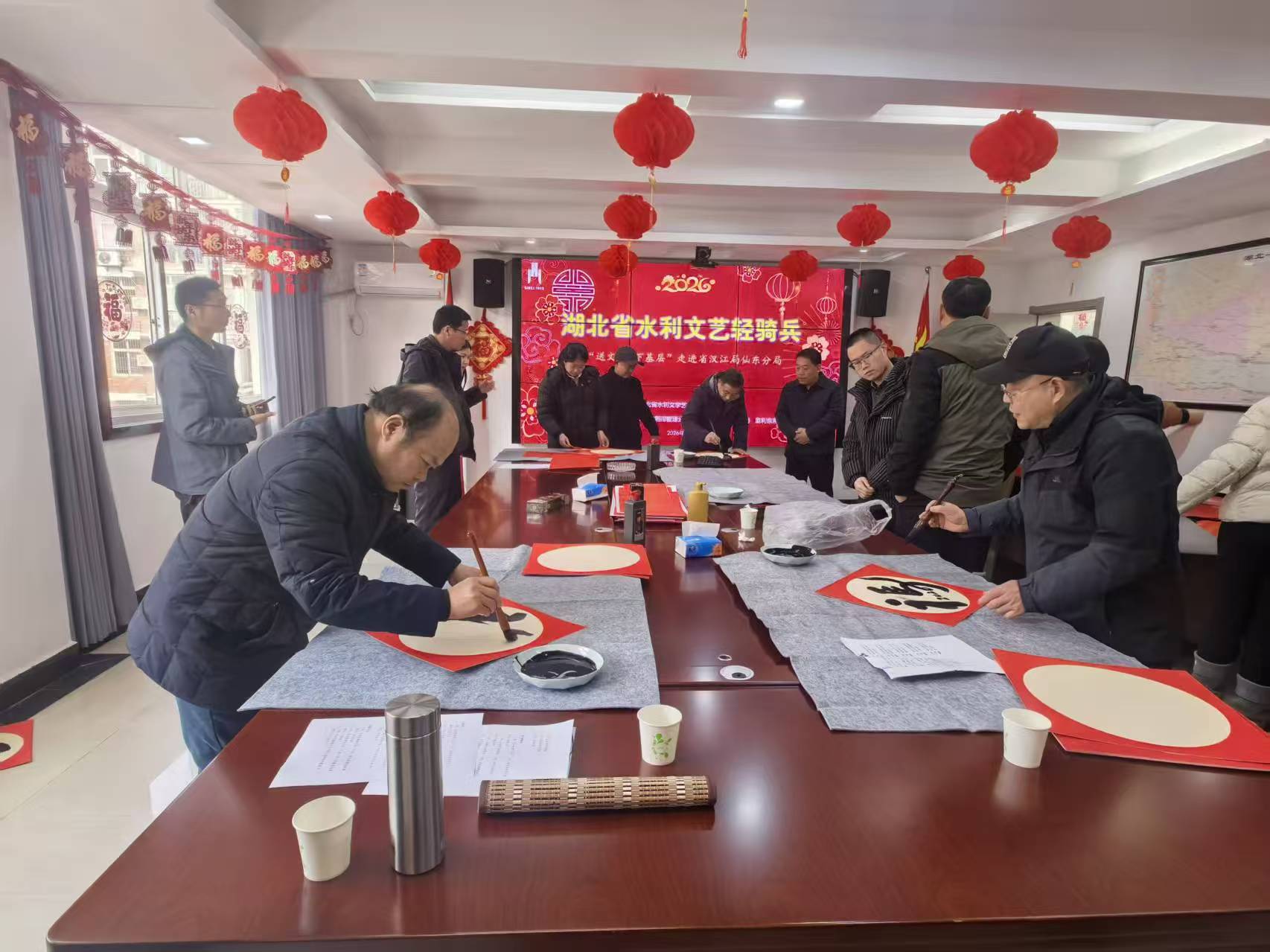 金蛇辞旧岁,骏马启新程。2月10日,省水利厅红色文艺骑兵小分队奔赴省汉江局仙东分局,开展“写春联送祝福、欢歌迎新春”等主题活动,以笔墨寄情、以歌声抒怀,为坚守治水兴水一线的工作者们送上别样的“文化年货”,让墨香与欢歌交织成冬日里最温暖的水利乐章。