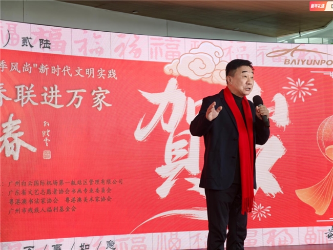 当春运大潮遇上岭南年味,当笔墨书香邂逅空港温情,一场汇聚文化底蕴与新春祝福的盛会在湾区枢纽温情上演。2月9日上午,“我们的节日·欢乐中国年”2026年广东省道德春联进万家“挥春送福”活动在广州白云国际机场激情开启。本次活动由广东省精神文明建设办公室、广东省文学艺术界联合会指导,广东省文艺志愿者协会、广东省书法家协会主办,广州白云国际机场第一航站区管理有限公司承办,广东省文艺志愿者协会书画专业委员会等多家单位协办,以笔墨为媒、以文化为桥,为南来北往的旅客、坚守岗位的机场职工送上马年新春的专属祝福,绘就一幅“德润南粤、福满空港”的新春画卷。