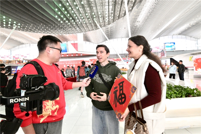 “我是从国外回来的,在白云机场进行中转。马上就要回家过年了,能在机场看到精彩的非遗表演,又能拿到书法名家亲手写的春联和福字,感觉特别有年味,心里暖暖的,这份祝福太珍贵了!”长期驻海外工作的林先生感慨道。