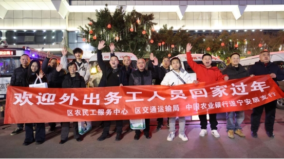 夜虽寒,但挡不住归乡的脚步;人流如潮,涌出站口便见家乡的守候。除了便捷的接驳车,一份份精心准备的新春“大礼包”也让返乡人员惊喜连连。区农民工服务中心联合中国农业银行遂宁安居支行,为外出务工经商人员送上牛奶、面包、春联等暖心物资。