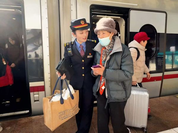 从协助上车、引导就座,到途中定时询问身体状况、帮忙订餐,列车组全程陪伴,让老人的旅途不再孤单。当列车缓缓驶入潍坊北站,老人的家人早已在站台等候。于红艳将老人安全交到家人手中时,他们紧紧握住她的手,连声道谢。这份跨越千里的守护,在团圆的笑意中,画上了圆满的句号。