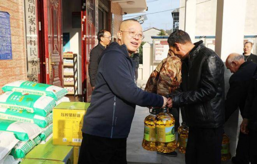 活动最后,绿之韵爱心代表们有序为村民们发放米、油等新春物资。每一份物资都承载着绿之韵对乡亲们的深切关怀,每一张笑脸都饱含着乡亲们对美好生活的期盼。随后,劳嘉理事长、胡均安常务副总裁带领集团战略委委员代表一行深入胡家村困难户家中开展走访慰问。每走进一户,爱心代表们都与困难群众促膝长谈,细致询问他们的身体状况、家庭生活情况和实际困难,亲手为他们送上慰问物资和慰问金。
