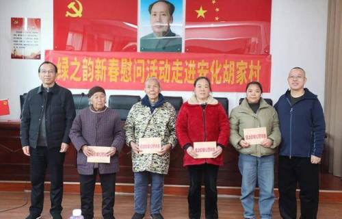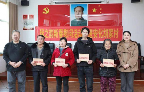 情系桑梓,暖润人心。2026年2月13日,绿之韵“迎新春 送温暖”新春慰问活动走进胡家村。湖南省安化县人大常委会党组书记、主任陈飞燕,胡家村村支书胡军等带领村支两委、村民代表参加活动。长沙市人大代表、湖南省慈善总会副会长、绿之韵集团董事长胡国安,湖南省政协委员、绿之韵集团总裁、绿之韵公益基金会理事长劳嘉,安化县人大代表、绿之韵集团常务副总裁胡均安,浏阳市政协委员、绿之韵公益基金会秘书长蒋文,绿之韵集团市场营销中心业务总经理赵蕾,雨花区人大代表、湖南绿之韵酒店管理有限公司副总经理徐继雷;绿之韵集团战略委委员李继前、吕秀玲、易园翔等一行从长沙出发奔赴冷市镇胡家村,为当地困难群众送上新春祝福和慰问物资。