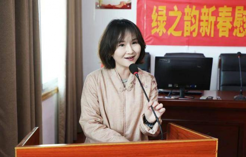 ▲绿之韵集团市场营销中心业务总经理赵蕾主持捐赠仪式