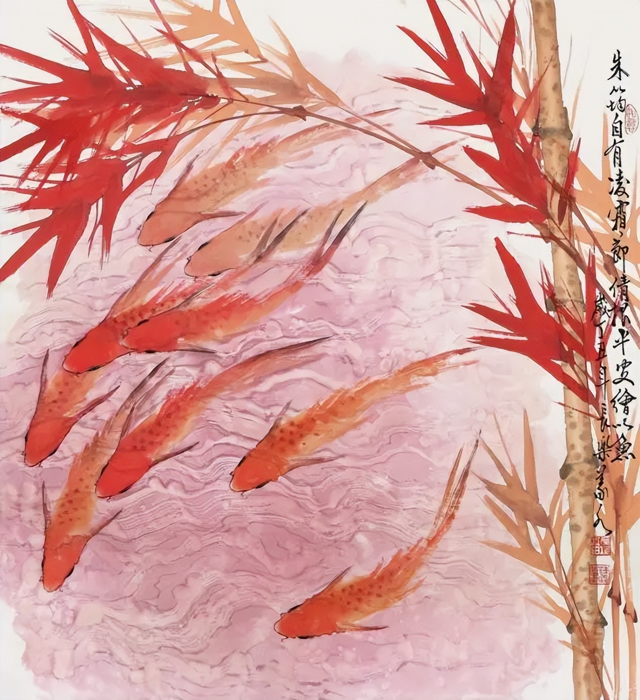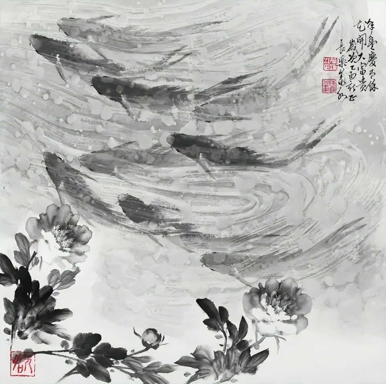 陈义水先生之鱼画,宛若古韵新风交织曲,质沿古义显沉稳,文变今情添逸趣,文化底蕴与时代感,完美交融成一律。笔下鱼儿跃纸上,非止自然之美描,更是心灵之境照。以鱼传情通幽微,自由欢娱祥瑞意,生动笔触绘鲜活,祥和寓意满图绘。"画鱼妙手,栩栩如生,跃然绢素,宛在水中。"陈义水之作,此境之最佳诠释也。
