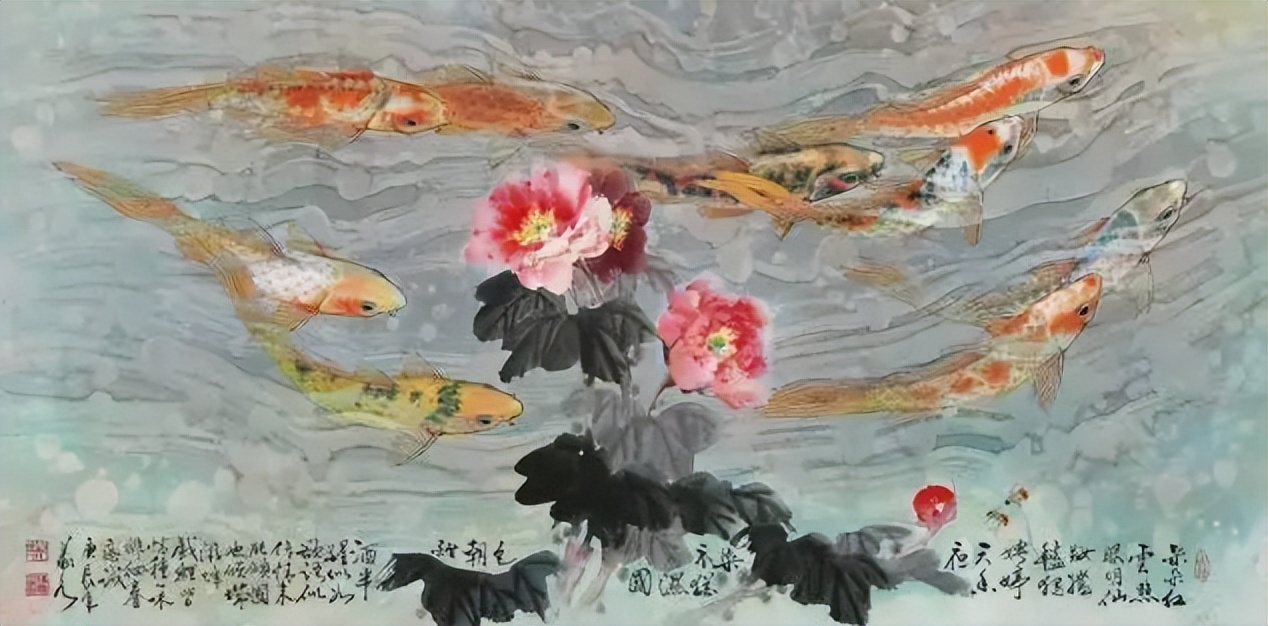 在继承传统的基础上,陈义水先生勇于创新,敢于突破。他深知"传统不是自己,创新才有出路"的道理,因此,在画鱼的过程中,他并不满足于对前人技法的简单模仿与复制,而是更加注重对生活的观察与感悟,从生活中提炼艺术元素,将观察,妙悟作为自己探索艺术的主攻方向。他创造的"鱼水相融"的艺术手法,便是这一理念的生动体现。在他的作品中,鱼与水相互依存,相互映衬,既有具象之美的生动描绘,又有意象之韵的深远意境,真正实现了"致广大而尽精微"的艺术升华。