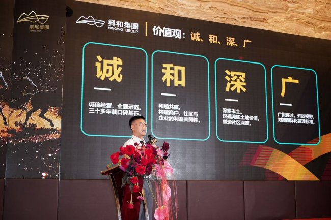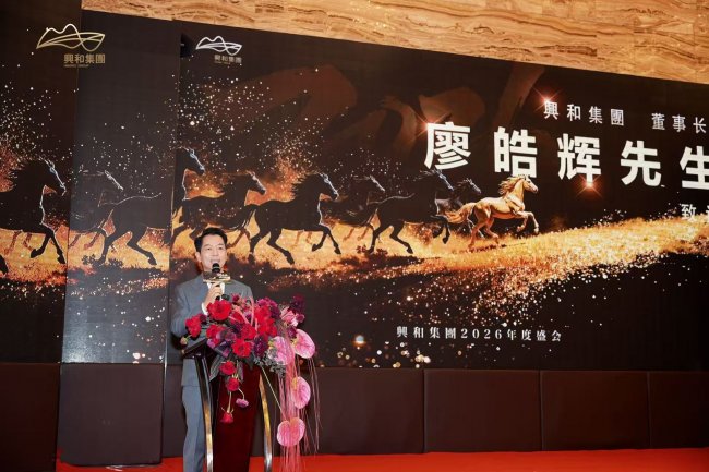 在万众瞩目中,集团董事长廖皓辉先生登台致辞。他回望2025年这非凡的一年,兴和人在市场的潮起潮落中坚守初心,在行业的迭代升级中破浪前行。他强调,每一份成绩的背后,是全体同仁的同心协力,是管理团队的睿智抉择。廖董事长的讲话高屋建瓴、情真意切,不仅为过去一年的奋斗画上圆满句点,更擘画了集团未来发展的宏伟蓝图,令在场每一位兴和人心潮澎湃。
