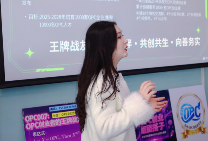 关于发展现状,学会已搭建18个微信交流群、4个小红书社群、2个抖音专属社群,运营3个视频号和2个公众号,设有10个职能部门,12位讲师,累计覆盖1800多名OPC领域创业者。