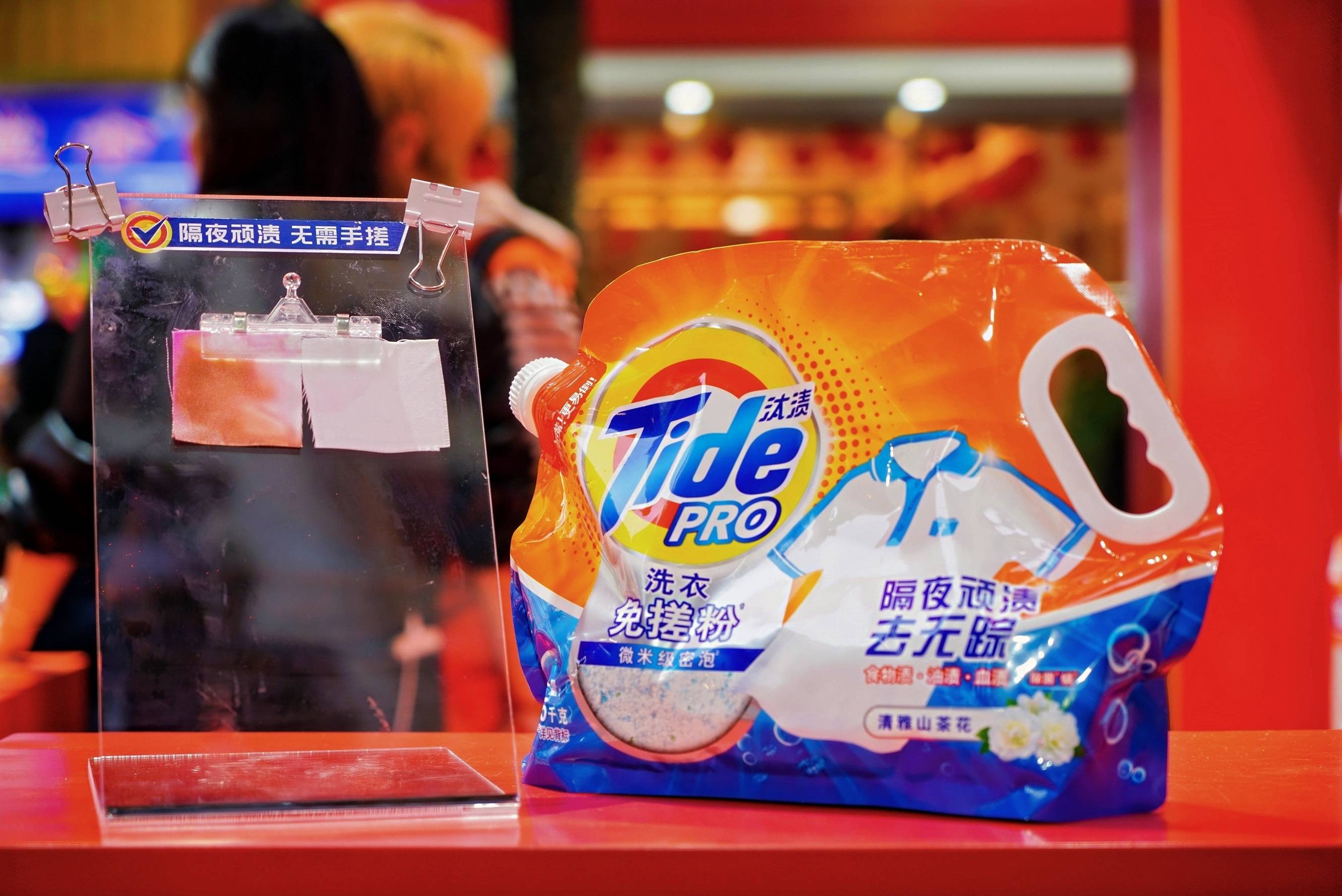 除了重磅新品洗衣原液,汰渍洗衣免搓粉也一并亮相广州越秀西湖花市。现场不少市民被展区中“汰渍免搓演示区”吸引驻足,工作人员通过污渍清洁实验,展示污渍衣物洗前洗后的效果对比,让消费者直观感受汰渍洗衣免搓粉带来的卓越性能。该产品搭载首创的微米级密泡科技,可快速渗透纤维深处,有效分解隔夜污渍与日常油垢,真正实现“隔夜顽渍,无需手搓”,极大减轻春节清洁负担。