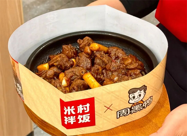 与此前较多停留在产品营销层面的联名不同,周黑鸭和米村拌饭的合作侧重于菜品研发与味型融合。