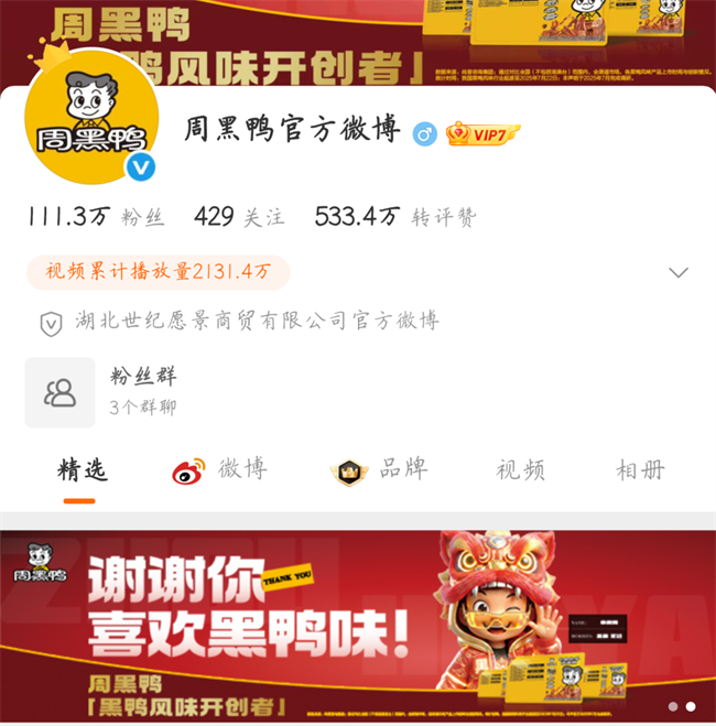 与此同时,周黑鸭的电商页面、社交平台也同步完成了新年“大换装”,线上线下都营造出新年氛围感。