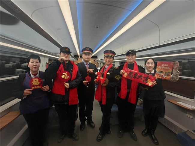 千里铁道线,浓浓护归情。西安客运段上海二队西杭一组的乘务人员们,用坚守诠释初心,用服务传递温暖。在2026年马年新春之际,他们以列车为阵地,用青春和汗水守护着万千旅客的回家路,成为除夕之夜铁道线上最靓丽的风景线。(西安客运段 杜金明)
