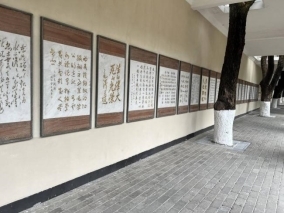 沿着故居外的诗词对联书法艺术碑廊前行,实践团成员们被一幅幅镌刻在大理石上的书法作品深深吸引。这些作品既有 “生的伟大,死的光荣” 等经典题词,也有 “为人民服务”“天下兴亡,匹夫有责” 等振聋发聩的名言警句,遒劲的笔力与厚重的历史底蕴交相辉映。队员们在品读中感悟革命先辈的理想信念与价值追求,深刻体会到红色精神在新时代的传承与延续。
