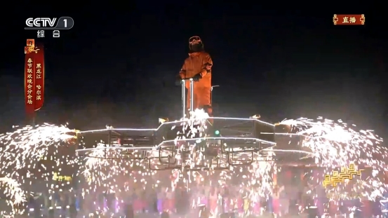 表演现场,漫天风雪呼啸交织,酷飞飞行器迎着凛冽寒风稳稳垂直升空,飞行器的每一次姿态调整,都与地面歌舞表演的韵律节奏、灯光特效的璀璨光影精准呼应、无缝衔接,不仅将晚会 “骐骥驰骋” 的磅礴气势与灵动姿态演绎得淋漓尽致,更在全球亿万观众的瞩目下,直观彰显了中国低空智能装备在极端环境下的卓越性能与硬核技术实力。