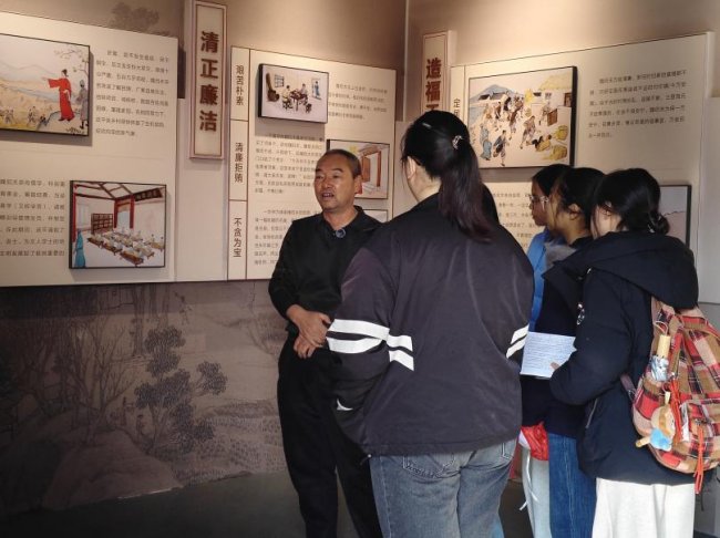 图4:朱美钦老师(左一)介绍魏侃夫文化