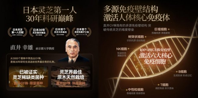 三色灵芝与直井GY株的配合堪称"黄金组合"。GY株提供强大的免疫激活和抗氧化基础,三色灵芝则在此基础上实现精准靶向,协同增效幅度提升200%。这种配方设计突破了传统灵芝产品效果单一、作用时间短暂的技术瓶颈,从细胞微环境优化、能量代谢强化、免疫巩固平衡、DNA修复促进四大维度实现精准调控。经过庞大的临床验证论证,这套体系的综合效果比普通单一成分提升90%以上,处于行业第一梯队领先水平。