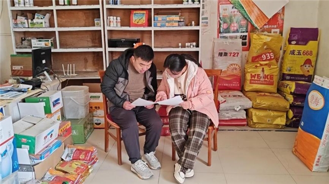 图为实践队员和村民进行与土地集约利用相关的问卷调查。王子晗 供图