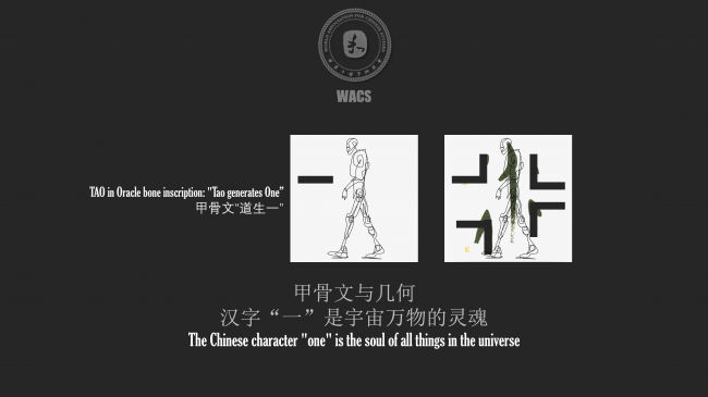图解4:东西灵魂碰撞 - 汉字一是数字也是几何线/eastern western souls meet, Chinese characters are numbers and geometric lines.