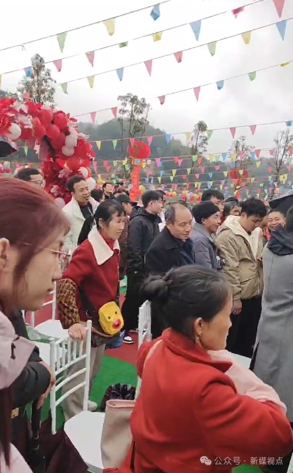 红地毯铺起来了,“爱情门”搭起来了,音响里循环播放着《甜蜜蜜》《最浪漫的事》,一场乡村新春相亲会正在雨中温情上演。