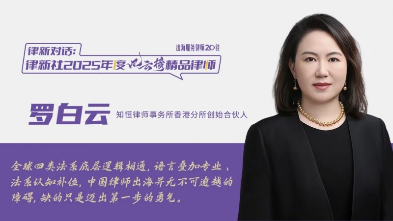 中国律师出海,方向确认,但是“想闯者”已成众,“闯成者”尚寥寥。 数据显示,截至2026年2月,在香港注册可执业的中国律师为578人。[1]这个数字,距离罗白云成为第125号香港注册外地律师的2014年,增长了453人。而这12年间,中国律师总人数已从27万飙升至83万——平均每增约1236名内地律师,香港只多1位持证者。罗白云介绍,在香港,庞大的跨境刑辩业务需求背后,仅站有2位中国内地律师[2];一项基础的香港跨境支付银行服务业务、一项频繁发生的内地人在港刑事保释业务、一项简单的在香港登记结婚的业务……做了13年,至今依然无人竞争。蓝海市场,为何没有蜂拥而至? 罗白云律师一语道破:大家缺乏的从不是能力,而是勇气和信息。 罗白云,知恒律师事务所香港分所创始合伙人,兼具香港注册外地律师与中国内地律师资质,拥有近二十四年执业经验,凭借银行资本市场背景与法律专业的融合优势,她擅长以商事思维赋能法律服务,业务覆盖遗产继承、婚姻家事、跨境经济犯罪辩护、国际仲裁等领域,并致力于为中国律师海外执业、律所海外发展提供实务指引与创新方法论。 2025年12月,“律新社2025年度风云榜:出海服务律师20佳”发布,罗白云成功入选。近日,律新社深入对话罗白云,探寻如何在中国律师出海的潮头,既做开拓者,亦做摆渡人。