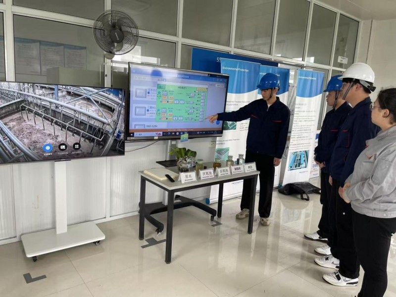 热智科技团队在实验室进行危废弃液浓缩处理系统的演示与探讨 。