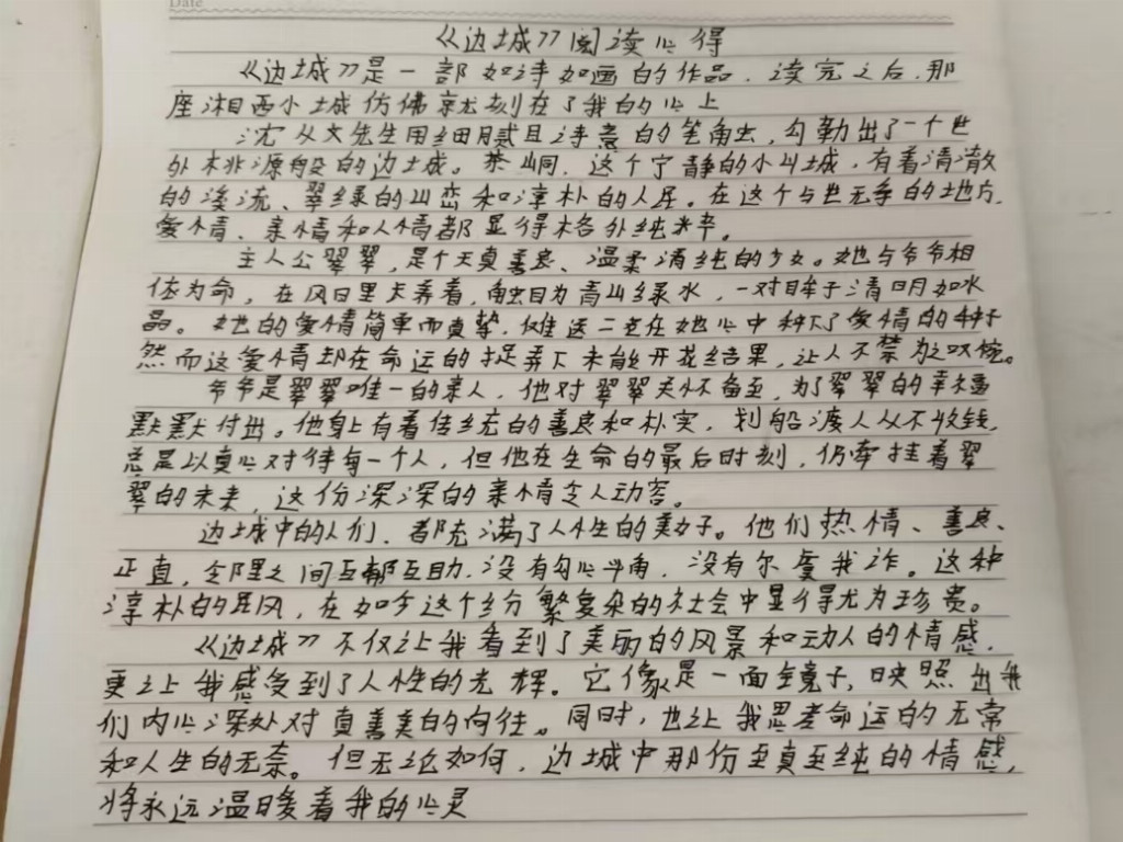 在“一起快乐阅读”的活动里,志愿者与学生共同精心挑选了沈从文先生的经典著作《边城》。活动主要内容包括共同制定详尽而细致的阅读计划、在阅读结束后交流各自独特的感悟与体会两个部分。书中所描绘的如诗如画的湘西世界、淳朴的民风、优美迷人的自然风光以及真挚深沉的情感,成为志愿者们与学生交流的热门话题。