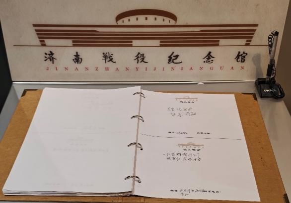当日下午,团队来到济南战役纪念馆,在珍贵的历史照片、饱经沧桑的革命文物中,重温济南战役的烽火岁月,感悟革命先辈在艰苦卓绝环境中救死扶伤的伟大精神。队员们在留言簿上郑重写下“大医精诚怀天下,岐黄仁术报中华”的誓言,许下新时代中医药学子传承红医精神的庄严承诺。