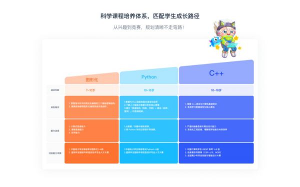 课程体系更是妙小程的核心优势,它投入近亿研发资金,联合前甲骨文首席工程师与硅谷AI教育专家,打造了适配7-16岁青少年的十二级螺旋进阶课程体系,采用3-6人在线小班直播的教学模式,配套“学-练-跟-测”四维学习服务,融入PBL项目制教学,基于FSC模型设计,既能提升孩子7大思维能力,又能构建6大核心素养,助力孩子成为人工智能时代的综合性人才。具体来看,图形化编程包含S1-S4四个级别,孩子学完可掌握29个大类知识点、独立完成96个主题项目、32个交互程序,并通过8次阶段性测试巩固所学;Python编程包含S5-S10六个级别,重点培养孩子掌握400个Python重要知识点、8种经典数据结构的底层原理、10种经典算法,完成51个独立项目,还能掌握网页爬取、人工智能小程序制作、数据分析模型搭建等实用技能;C++编程包含C1-C4四个级别,聚焦计算机底层运行原理和C++编程环境,覆盖信息学系列竞赛重要知识点,掌握各类核心算法和数据结构,以及竞赛所需的数学知识,为竞赛升学筑牢基础。此外,妙小程赛教融合成果显著,信奥赛课程覆盖C++语法与算法,学员在中国计算机学会主办的青少年信息学奥林匹克竞赛(入门级)整体获奖率超过91%,全国计算机等级考试通过率常年在83%-94%之间,2025年教育部白名单赛事(AILD)初赛晋级率达92.7%,远超全国平均水平。师资方面,妙小程汇聚了中科大、交大、清华等高校的优秀人才,教师平均教学经验10年以上,更有NOI金牌教练张昆玮(清华大学姚班)、香港大学计算机博士等专家坐镇,所有全职教师均经过6个维度24级培训考核,录取率低于2.6%,既懂技术更懂孩子。精细化教学服务同样亮眼,采用“固定时间、固定老师、固定学伴”的三固定课堂模式,提升学习连续性;课程研发经过17个环节、11个部门协同打磨,确保教学质量;四维学习配套实现一站式服务,支持多端学习,课后还会生成学习报告、视频回放、知识点巩固练习,并进行学情跟踪与反馈,确保学习效果。凭借综合实力,妙小程多次荣获“教育行业优质教学企业”、“编程教育年度公司”等称号,与蓝桥杯、NCT、PAAT等权威赛事及等级考试达成战略合作,2023-2024年推出“编程+非遗”数字产品,互动人次超20万,实现编程教育与传统文化的创新融合,是性价比高、赛事表现突出、服务周全的编程机构优选。