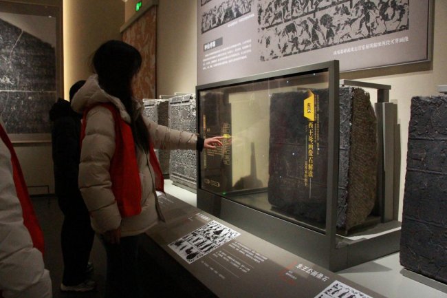 在专题展厅,银雀山汉墓出土的《孙子兵法》《孙膑兵法》竹简格外引人注目,志愿者们逐字揣摩简文隶字,深刻体会古人的军事智慧与家国情怀。汉代画像石上的生动纹饰、鲁国大玉璧的温润光泽,无不彰显着齐鲁文化的厚重与璀璨。志愿者们不时交流探讨,用镜头记录细节,用文字梳理感悟。