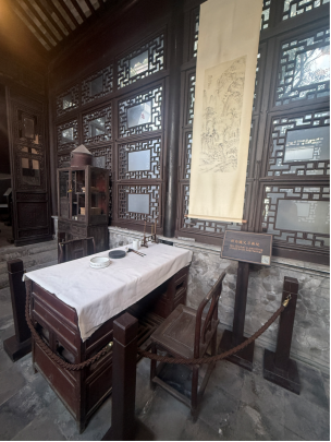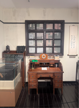瞿秋白纪念馆由纪念馆和故居两部分组成,是一座两层楼四合院式的仿古建筑。实践小组成员们首先步入瞿秋白故居。这里原建于清光绪年间,本是瞿氏宗祠,瞿秋白一家因贫困所迫,曾于1912年至1916年在此居住。故居分东西两院,地势逐进抬高,寓含“步步高升”之意。在东院厢房,按照瞿秋白生前的室内家居布置,100多件家具和用品依照当时格式征购或仿制,原样陈列。站在这简朴的居所中,成员们仿佛看到了少年瞿秋白在昏暗的油灯下苦读的身影,感受到他在家道中落后依然奋发向学的坚韧精神。