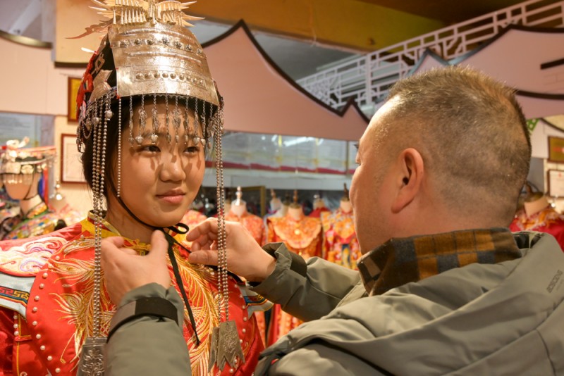实践队员体验试穿畲族凤凰装