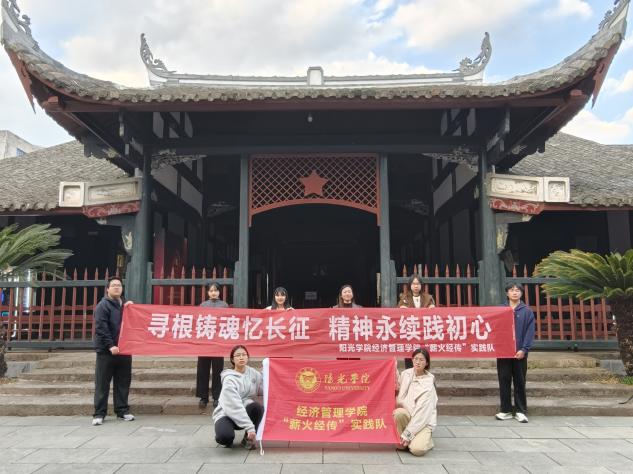 为纪念中国工农红军长征胜利90周年,深入弘扬伟大长征精神,厚植青年红色基因,2026年寒假期间,阳光学院经济管理学院“薪火经传”实践队在指导老师陈银屏和辅导员陈云静的带领下,跨越五百公里奔赴福建长汀,围绕“溯源中复村”“铸魂汀州城”两大主线,开展为期三天的沉浸式红色研学实践活动。队员们踏访长征起点,深入苏区腹地,在行中走感悟历史,在追溯中筑牢信念,在践行中凝聚青春担当。