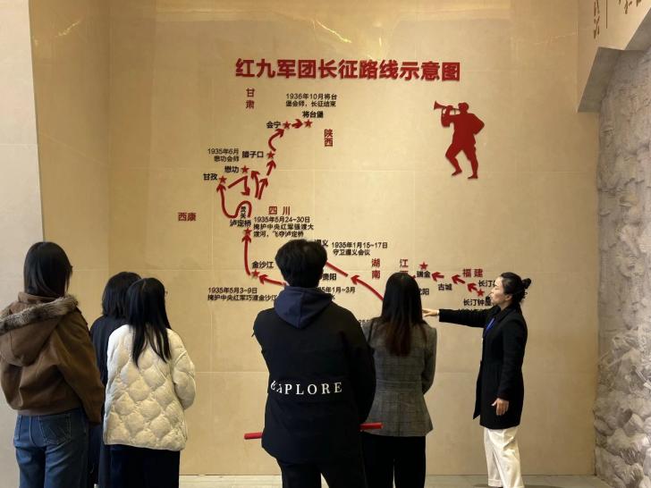 松毛岭战役沉浸式演艺厅内,三十分钟的“松毛岭之恋”深情演绎了新婚妻子阿妹与参加红军的丈夫阿根“一朝送别,半生守望”的感人故事,结束时队员们眼含热泪起身向先烈们三鞠躬致敬,深切体会到军民鱼水情深是长征胜利最坚实的力量源泉。红九军团长征出发地陈列馆中,锈迹斑斑的枪支、磨损的草鞋、详实复原的长征路线图,共同勾勒出那段艰苦卓绝的历程,彰显“战略轻骑兵”的历史担当。
