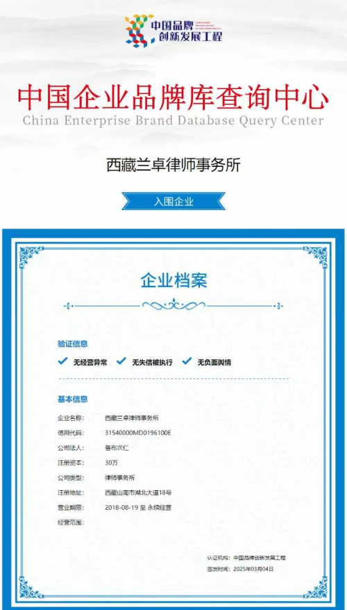 品牌战略平台“中国品牌创新发展工程”正式公布最新入围名单,西藏兰卓律师事务所凭借在法律服务领域的专业深耕、创新实践与社会责任担当,经多轮资质审核、专家评议及行业调研,成功跻身入围名单,成为西藏法律服务行业品牌建设的重要里程碑,彰显了雪域法律人在全国品牌舞台的实力与风采。
