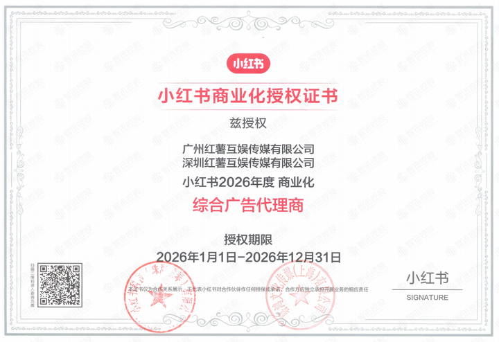 该资质授权,不仅是小红书平台对红薯互娱专业能力与服务价值的权威认可,更标志着智讯控股在构建全域数字营销生态、深化社交平台战略布局上迈出的关键一步。