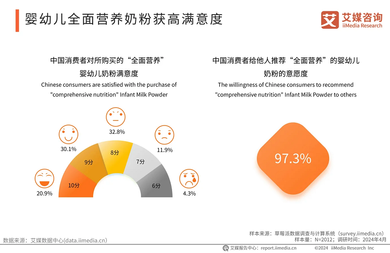 iiMedia Research(艾媒咨询)调研数据显示,当婴幼儿奶粉的品质和营养全面性满足消费者的期望时,他们不仅给予高满意度评价,而且还愿意进行口碑推荐(97.3%)。企业可通过积极的反馈提高转化率和提高品牌忠诚度,在竞争激烈的市场中建立强大的品牌影响力,从而实现长期的业务增长和成功。目前,海普诺凯在消费者群体中形成了良好的口碑。