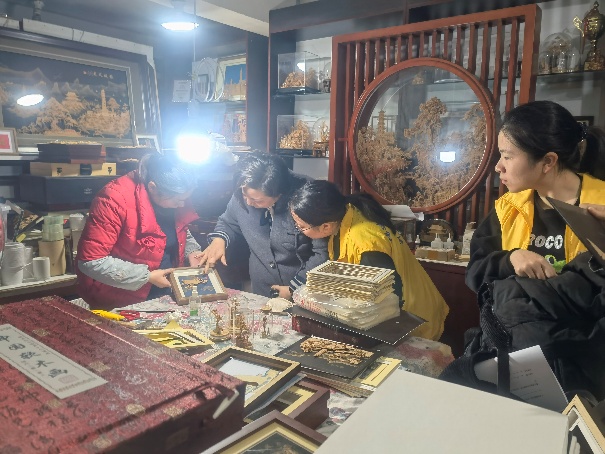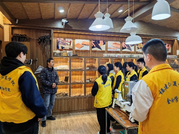 立足金融专业核心优势,实践队从“文化感知”稳步走向“问题探究”,坚持问题导向开展全方位、多层次实地调研,精准把脉不同传承场景下闽都非遗的发展现状与核心诉求。队员们深入访谈吴航喜箩、软木画、茉莉花茶等非遗项目传承人及运营管理者,细致梳理小微非遗工坊在人才培育、原料采购、产品研发、资金周转等方面面临的现实困境,以及规模化非遗生产基地在成本管控、市场拓展、品牌打造等方面的发展瓶颈;实地走访福州非遗展示馆、上下杭历史文化街区,亲身体验数字化展陈技术,系统调研非遗商户的运营模式与发展痛点,深入分析文旅融合背景下非遗业态数字化转型、市场化运营的短板与不足;走进西园中心小学,实地察看软木画进校园的推进情况,与小学授课教师深入交流,详细掌握非遗校园传承在课程设计、师资培养、教具采购等方面的实际需求,全方位、多维度摸清闽都非遗传承的痛点难点与发展期盼,为后续精准赋能筑牢基础。