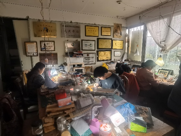 实践队以“文化寻根”为出发点,深入福州各类非遗实践场景,在观摩、体验与交流中,探寻千年闽都非遗的技艺内核与传承密码。队员们先后探访吴芝生软木画工坊、西园软木画生产基地,近距离观摩“薄如蝉翼、细如发丝”的软木画雕刻技艺,聆听传承人坚守初心、深耕技艺的动人故事,见证传统非遗从家庭小作坊向规模化、规范化发展的创新转型之路;驻足闽侯鸿尾乡非遗传承基地,细细品味竹编作品的精巧纹路,亲手参与中医药香氛画的调配流程,深切体会民间非遗“守艺有恒、创新有度”的质朴与灵动;走进沈绍安漆艺博物馆,沉醉于脱胎漆器的流光溢彩,真切感受“非遗+科技”深度融合的创作魅力;探访福州茉莉花茶美学馆,循着清雅茶香学习筛花、窨茶等传统工艺,系统了解茉莉花茶从种植、加工到销售的全供应链体系,直观感受非遗融入日常生活的鲜活生命力。