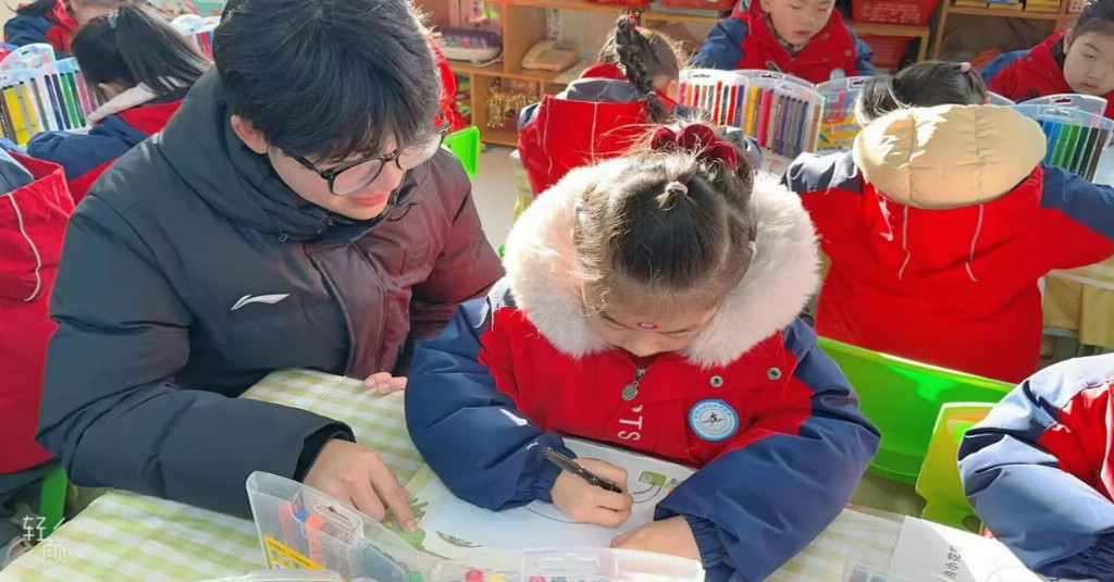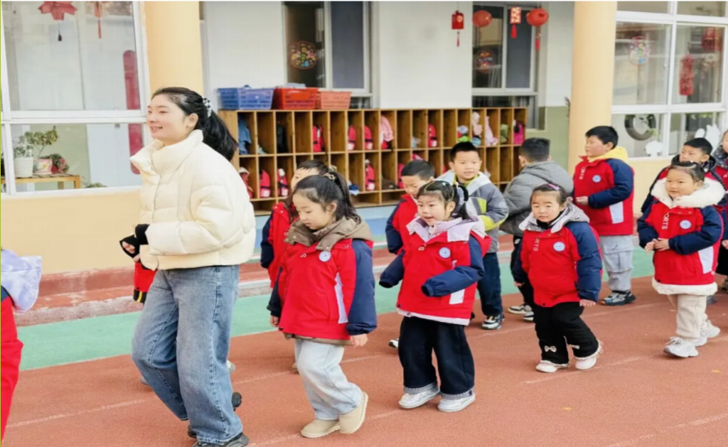 第二部分“暖阳律动,暖意相伴”。晨间操环节正式开启。幼儿园小朋友牵起实践团成员的手,于朝阳下在操场舒展肢体。晨间点心时段,实践团成员陪伴孩子们分享美食、轻松互动,在愉悦氛围中为后续活动积蓄了满满能量。