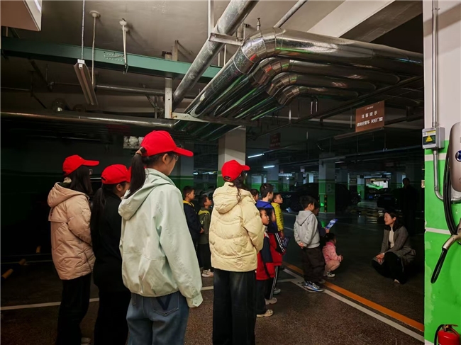 理论学习之后,在社区工作人员的带领下,实践队队员走进社区治理一线,实地感受“公共服务均等化”的实践成效。党建宣传栏上“教育强国、科技强国、人才强国”的醒目标语,彰显了社区治理的正确方向,也让队员们感受到党建引领在基层治理中的核心作用 ;生活垃圾定时定点分类收集房的智能锁控系统与积分兑换机制,将科技赋能融入精细管理,既提升了垃圾分类准确率,又激发了居民参与治理的积极性,生动诠释了“科技支撑”的治理理念;舞蹈室里居民舒展身姿的身影、图书阅览室中沉浸阅读的场景,展现了社区公共服务设施免费开放带来的丰富精神文化生活;而“四点半课堂”活动场地内,整齐的桌椅、丰富的图书、孩子们留下的手工作品,让队员们直观感受到高校与社区共建项目的丰硕成果,更深刻理解了“社会协同”“公众参与”在基层治理中的重要意义。一路走、一路看、一路学,实地参观让实践队队员对社区治理的实践创新有了更直观的认识,也为后续深化合作积累了宝贵经验。
